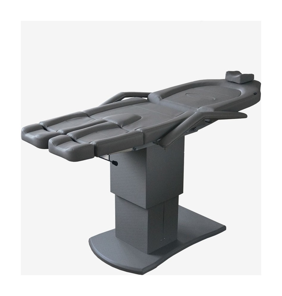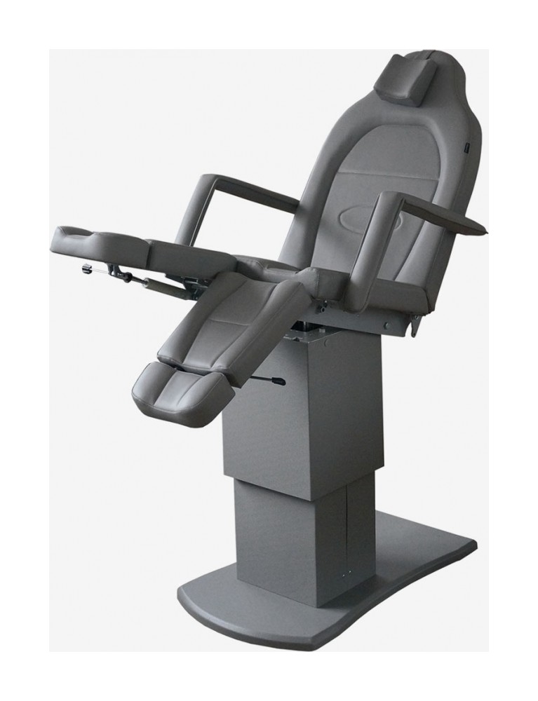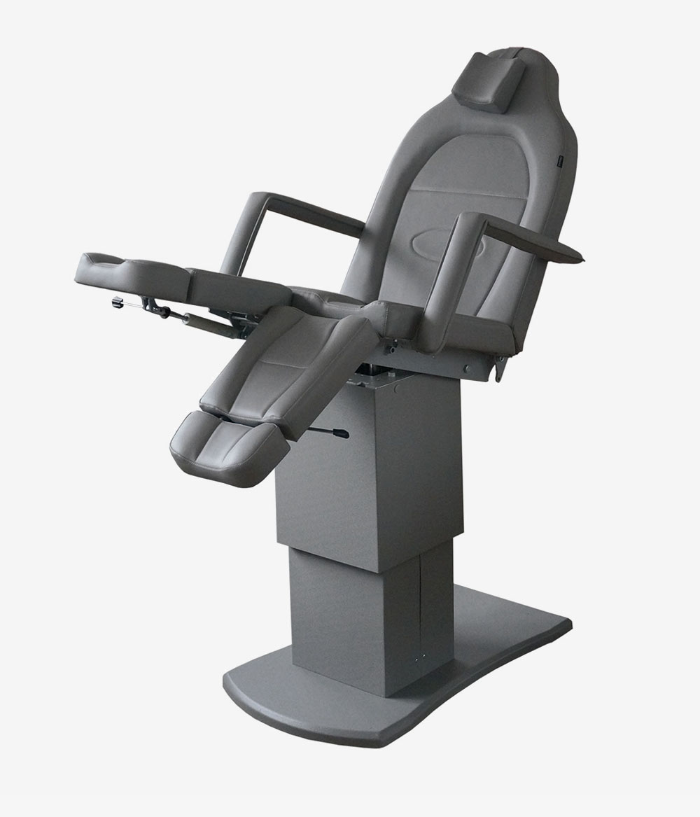 Педикюрное кресло оснащено тремя электромоторами, обеспечивающими регулировку высоты, угла наклона спинки и угла наклона сиденья. Опоры для ног фиксируются при помощи газ-лифтов. Кресло легко раскладывается в горизонтальное положение, образуя ровную поверхность. Надежная конструкция системы подъема обеспечивает высокую устойчивость кресла даже при максимальной высоте. Управляется при помощи ручного проводного пульта.