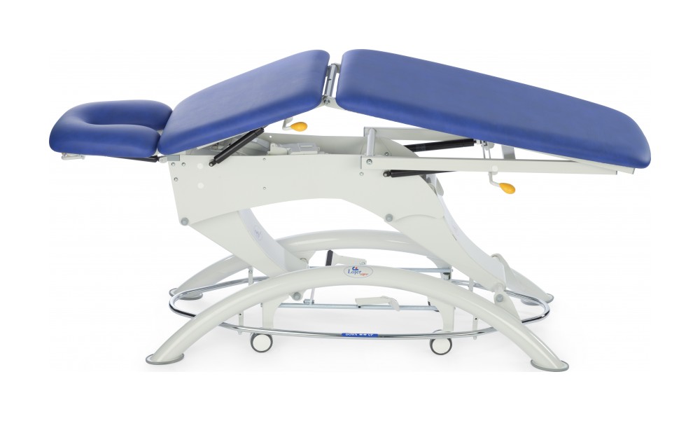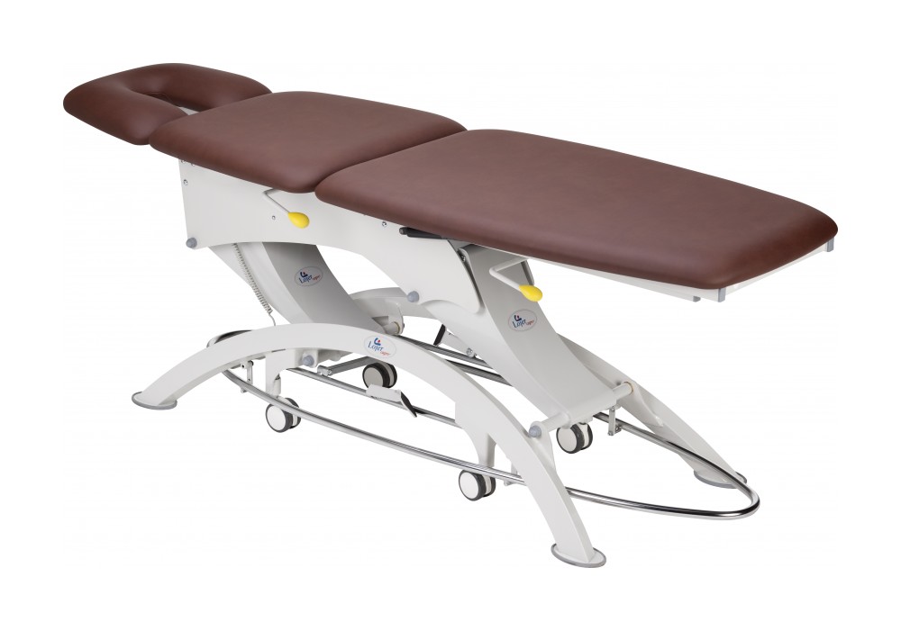Трехсекционный массажный стол Lojer Capre F3 -электропривод высоты при помощи напольной педали -пневмопривод ножной секции - головная секция O- или U- формы - гигиеническая антимикробная обивка - без регулировки дренажного угла