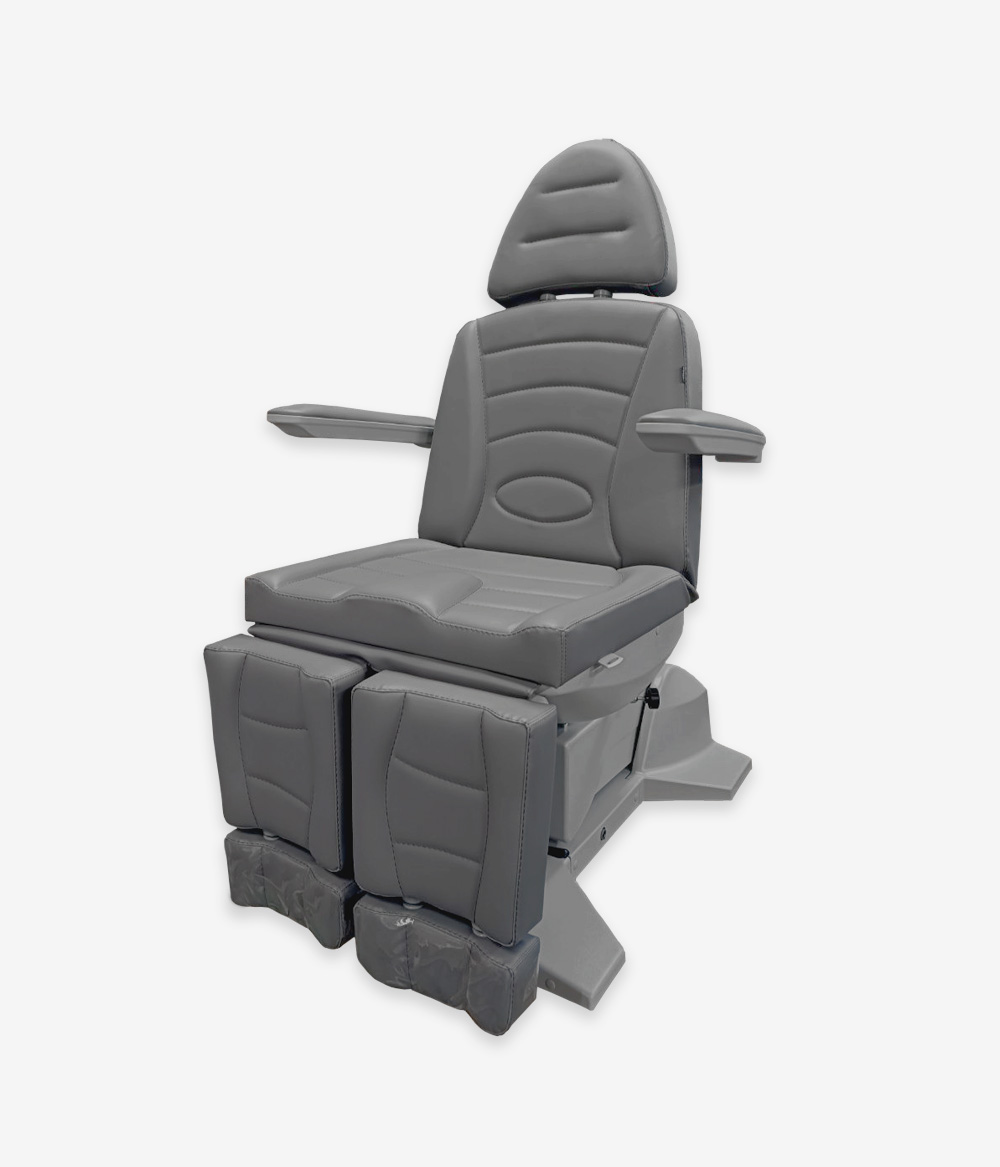 Педикюрное кресло оснащено пятью электромоторами, обеспечивающими регулировку высоты, наклона спинки, наклона сиденья и ножных опор. Кресло легко раскладывается в горизонтальное положение, образуя ровную поверхность. Надежная конструкция системы подъема обеспечивает высокую устойчивость кресла даже при максимальной высоте. Откидывающиеся подлокотники делают более удобным процесс посадки клиента. Управляется при помощи ручного проводного пульта.